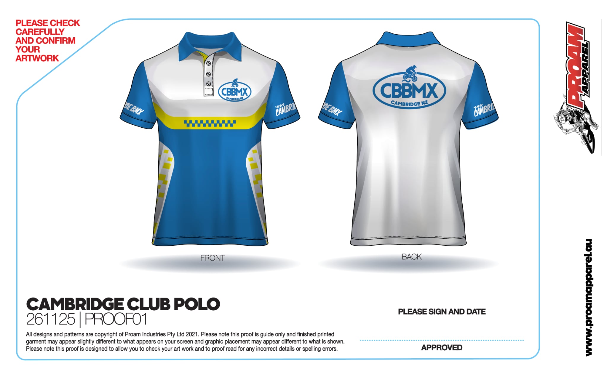 Cambridge BMX Club polo shirts. Available in both children's and adult sizes. See images for size guide.